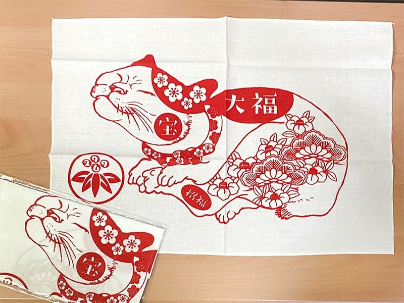 2969.さんの版画が手ぬぐいハンカチになりました。